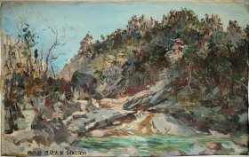 《内金刚宝德庵》油画作品1958年作,尺寸:55x36cm,作者:韩尚益~朝鲜已故油画大师。 (地位等同于中国的吴冠中,徐悲鸿等大家。此画作是韩尚益在1995年延吉艺术学校美术馆举办个人画展中的作品)