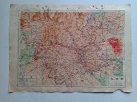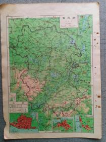 民国极罕见版 贵州省地图 16开 单面印刷 内有贵阳市省会图(贵阳市)、贵阳市附近图 民国原版地图 1946—1949年间出版印刷 赠地图保护袋 民国地图 民国贵州地图