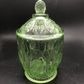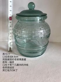 民国象钮心纹玻璃糖罐,口径10.8厘米,全高17.5厘米,图案古朴、罐体厚重,时代特征明显,老物件老工艺边缘有些许铸造毛刺,全新全品(品如图)BG658