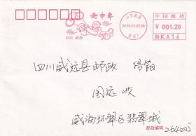 丙申年生肖邮资机戳实寄封
