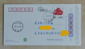 2009生肖牛实寄明信片(小地名戳)