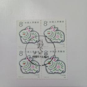 一轮生肖兔四方连邮票(盖纪念戳)