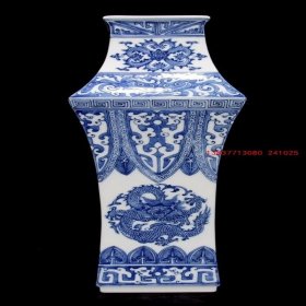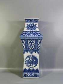 大清乾隆年制,青花四大上古神兽:青龙,白虎,朱雀,玄武,镇守四方邪魔:四方瓶