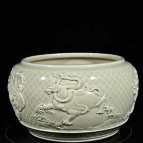 大清乾隆年制雕刻青龙白虎朱雀玄武四灵渣斗尊