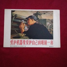 画片:曹惠林作,爱护机器象爱护自己的眼睛一样。品相自鉴