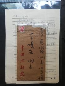 名人信扎:杭州市集邮协会主席我国集邮大师张包子俊寄给青岛市辛家庄,张伟,公函封,正贴j112(3-1)史沫特莱,贴改退批条,杭州-青岛,双戳清晰,198九.6.24,gyx224045