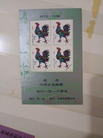 邮票《纪念中国大龙邮票发行一百一十周年纪念张辛酉鸡年生肖票图案(天津邮票公司发行)》品相、详情如图!放集邮册