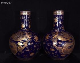清乾隆祭蓝描金龙纹天球瓶