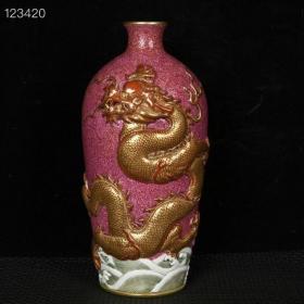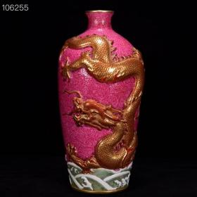 清乾隆胭脂红爬花珐琅彩描金雕刻海水龙纹梅瓶l