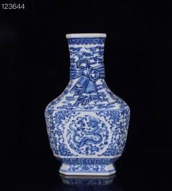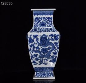 清乾隆青花龙纹兽头方瓶