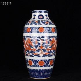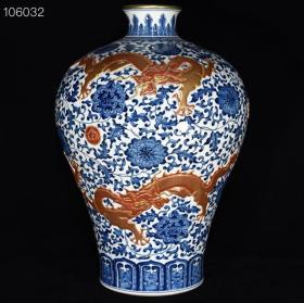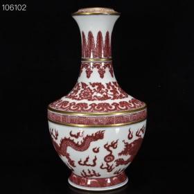 清乾隆年釉里红描金龙纹盘口瓶