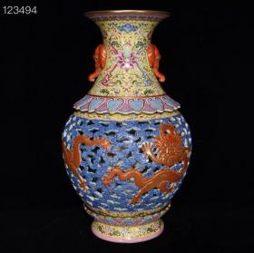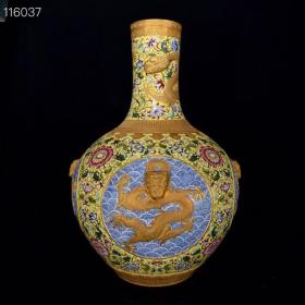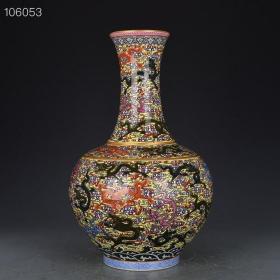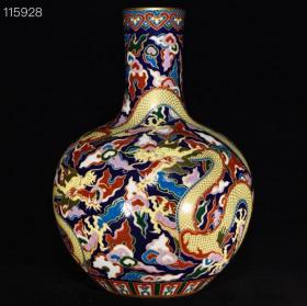 清乾隆珐琅彩龙纹天球瓶,