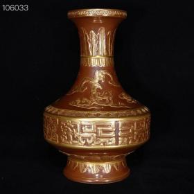 清乾隆紫金釉浮雕描金龙纹瓶
