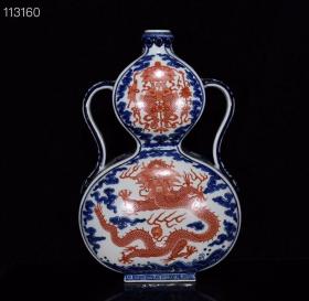 清乾隆青花矾红龙纹扁葫芦瓶n