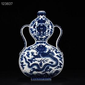 清乾隆青花龙纹如意耳葫芦扁瓶