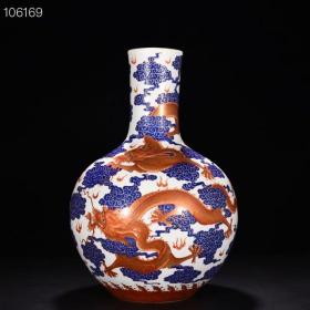 清乾隆青花矾红云龙纹瓶