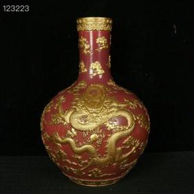 清乾隆扒花鎏金雕刻龙纹梅瓶