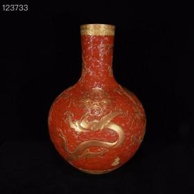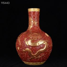 清乾隆珊瑚红鎏金龙纹天球瓶