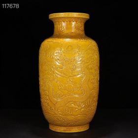 清乾隆娇黄釉雕刻五龙纹灯笼瓶