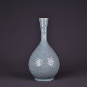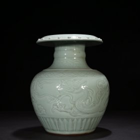 元龙泉粉青釉雕刻龙纹翻口瓶 35*25厘米