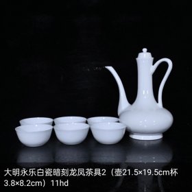 大明永乐白瓷暗刻龙凤茶具