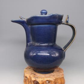 元祭蓝釉刻龙纹蒙古包 13*15.5厘米