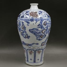 青花釉里红刻龙梅瓶
