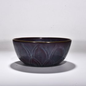 宋钧窑玫瑰紫釉刻龙纹蕉叶钵