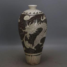 磁州窑白地黑彩雕刻龙纹梅瓶