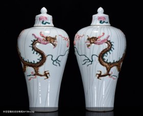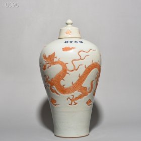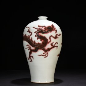 元釉里红雕刻龙纹梅瓶 40*20厘米