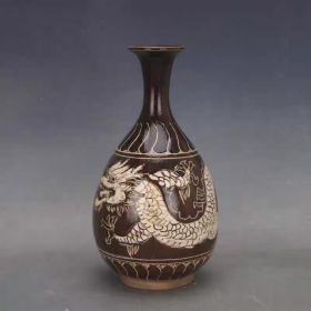 磁州窑手绘刻龙瓶