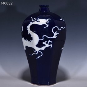 元霁蓝留白刻龙纹八方梅瓶,