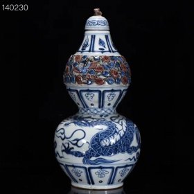 元青花釉里红雕刻龙纹葫芦,