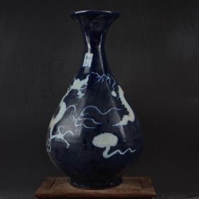 元祭蓝釉雕刻龙纹盘口瓶 34*18厘米