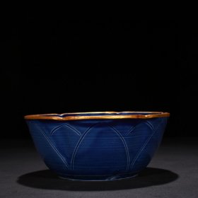 宋定窑官款蓝釉刻龙凤纹葵口碗 8.5*19厘米