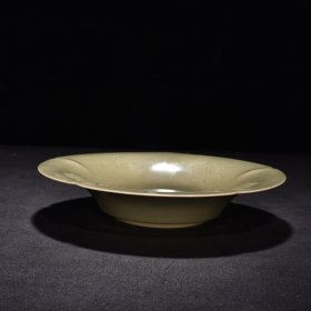 宋耀州窑刻龙纹葵口盘 5*21厘米