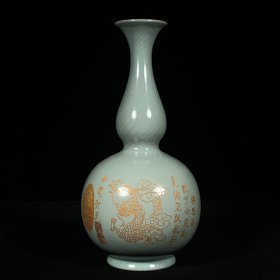 宋汝窑铭文刻龙纹葫芦瓶,高28直径13.5厘米