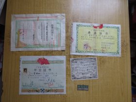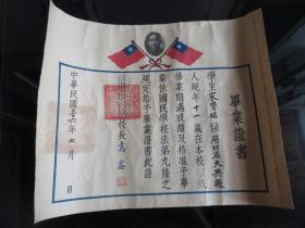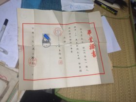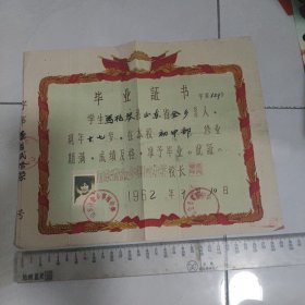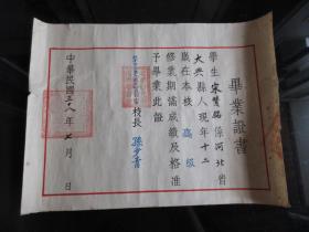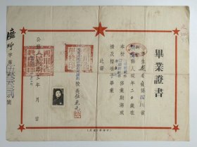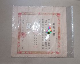 新中国揭阳文教史料实物~新中国揭阳教育史料实物~1955年揭阳第四初级中学毕业证书~盖揭阳县人民委员会公章、中学公章~校长:章庸熙(百度),副校长:陈质初,均钤印章~ 约39X 41.5 CM