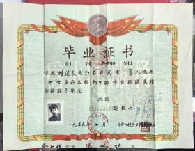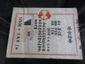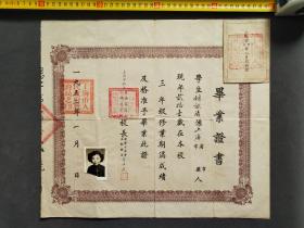 1950年6月29日浙江省鄞县罗伯源在铁路职工学校第三期九班修业期酱成绩合格,准予毕业的毕业证书(有照片照片上有郑圳铁路职工学校校长之章,方印一枚)