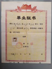 1954年武汉市武昌区第十小学毕业证(背盖武汉市第九中学教导处章,已验)