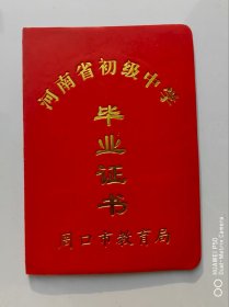 河南省初级中学毕业证书 (空白,周口市教育局印,带川汇区章)