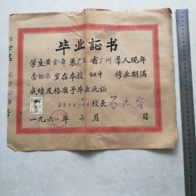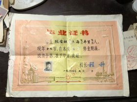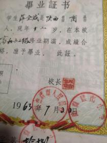 六十年代的毕业证,有章为洛南县和商县腰市