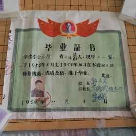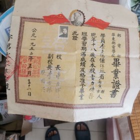 1956年老毕业证书一份 带主席头像,有章有本人图片,书友看好下单