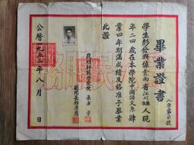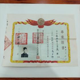 解放初期 四川省南川中学 毕业证书 贴照片钢印,国徽红章