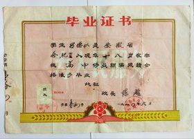 一九五八年高中毕业证书四个章戳 红旗头