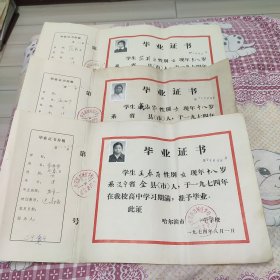 一个人毕业证书两张1975-1987带照片,革命委员会章