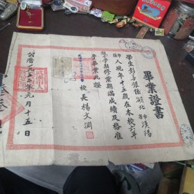 民国 上海市私立复旦中学 空白毕业证书 有校长和学习章