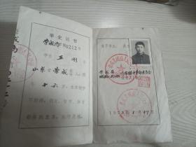 山东省荣成县中学生毕业证书(带照片带城厢人民公社章)