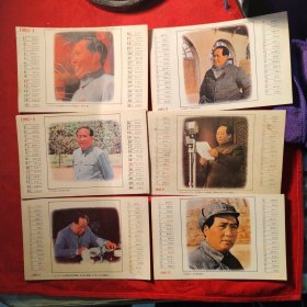 1993年,毛主席彩色照片日历6张全套,(双面像)