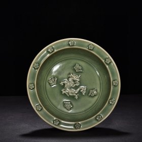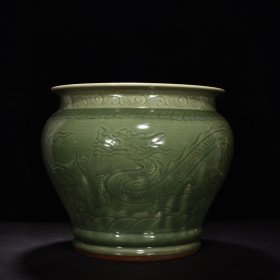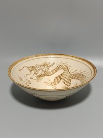 宋代吉州窑龙纹斗笠碗,瓷质细腻,釉色自然,龙纹清晰,工艺老道。碗身绘龙纹,外壁有云纹装饰,整体保存完好,无明显磕碰,品相几乎全新。尺寸直径15.7cm,高5.8cm。适合收藏或博古架摆放。
